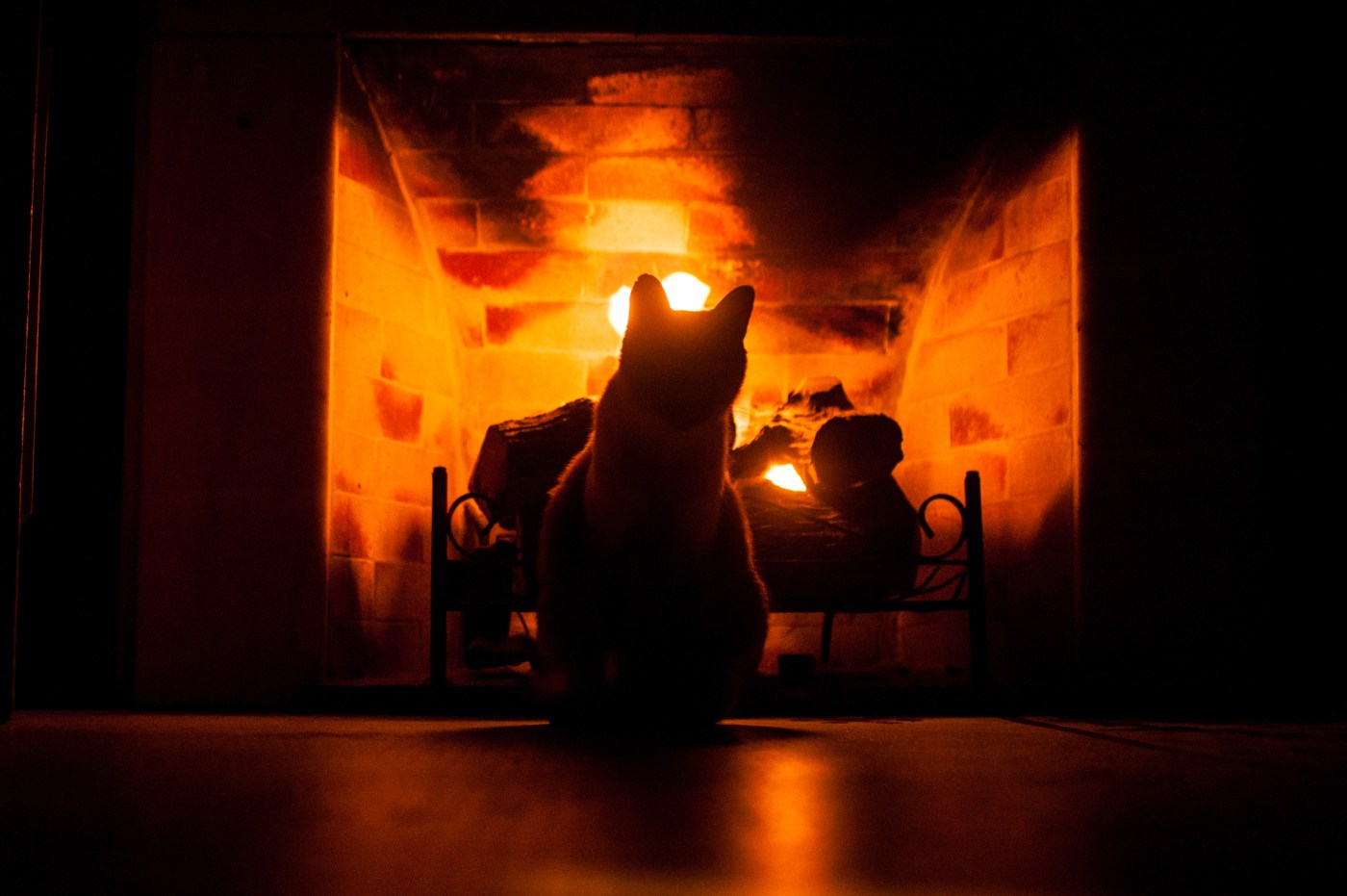 Curling up like a cat next to the fire place,